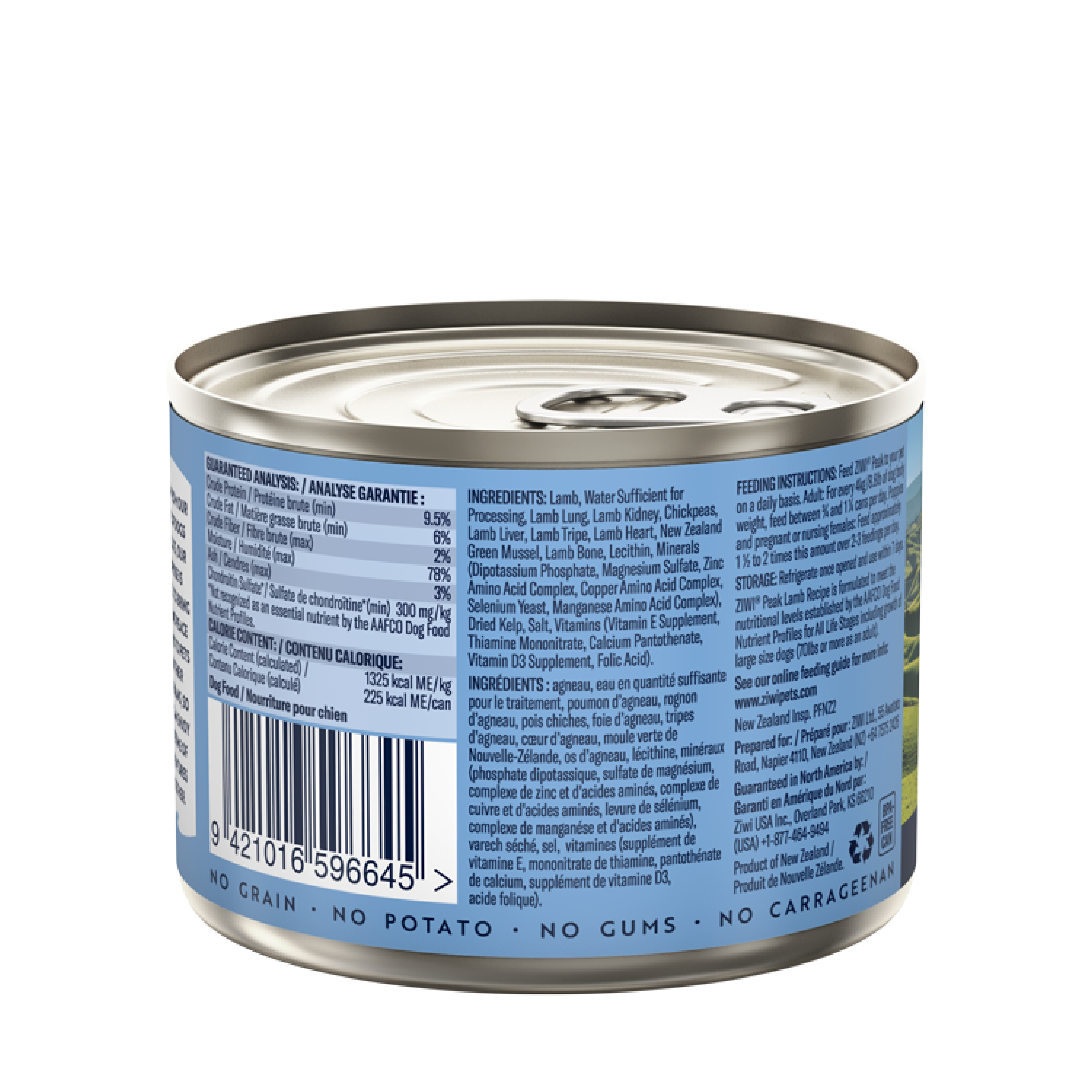 ZIWI Peak (ジウィ ピーク) ドッグ缶 ラム 170g×12缶|全犬種・全年齢対応 【正規品】